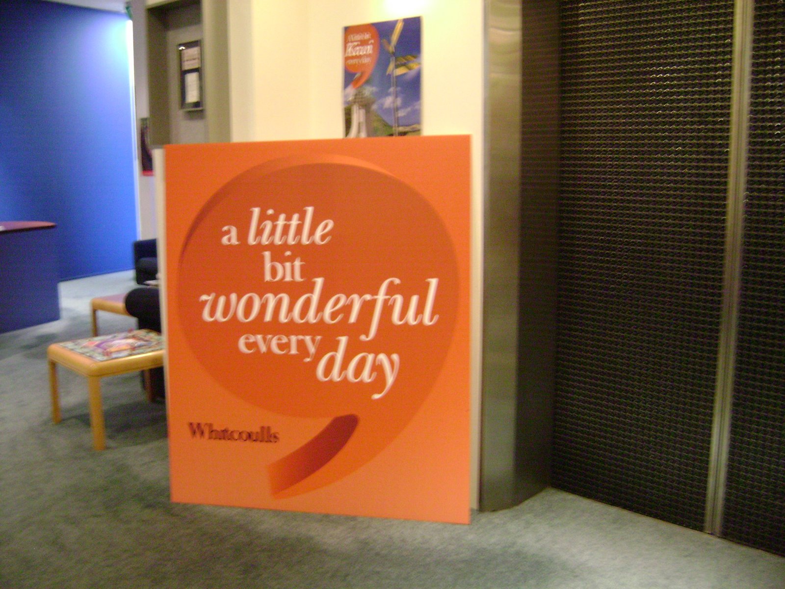 Here’s our new logo that greets us when we step out of the lifts. At the risk of being labelled a brown-nose, I actually quite like it. It’s very Ali to me, in that we should be looking for the wonderful in everyday things. Which is what this exercise is all about, right?