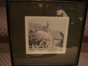 and this is a framed pencil sketch print I found in a Devonport op shop of a Selwyn-like church and graveyard. Si loves things like this. We found a gorgeous old church while roaming the other day – St Johns in Drury. Took some great shots with my new phone.