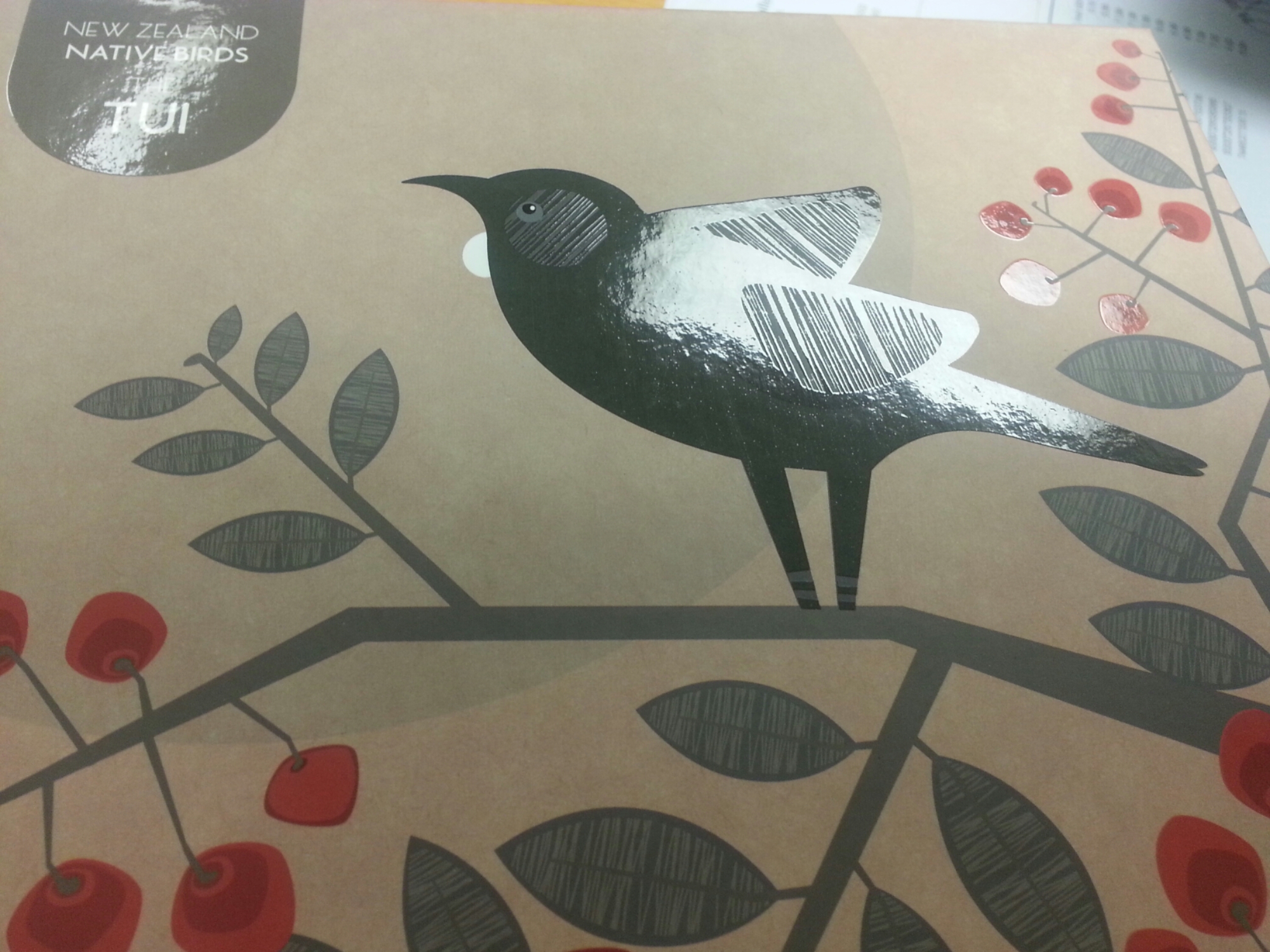I brought the Tui one. He’s printed on there in a heavy, glossy ink with texture, and the inside is perfect for my plans to store my Mill Hill bead packs. With a slight design amendment by Bran 🙂 he needs these projects for his NCEA paper!