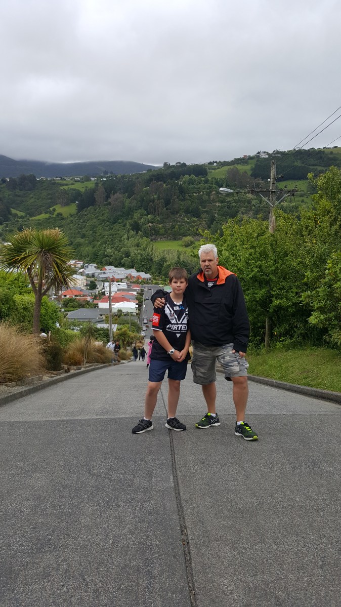 20161223_160101 Published January 11, 2017 at 2984 × 5312 in What I Did On My Summer Vacation « Previous Next » 23/12 – Dunedin. After the Cadbury factory tour, we went to Baldwin St, the steepest st in the world! And you HAVE to walk it…yay for bootcamp as prep!