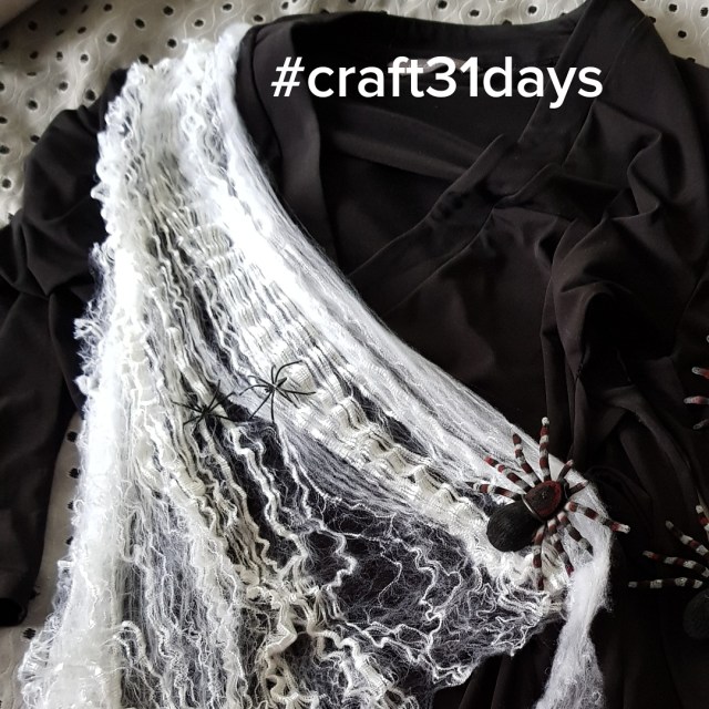 No cross stitching today, but I did sew a web and spiders onto my dress…
