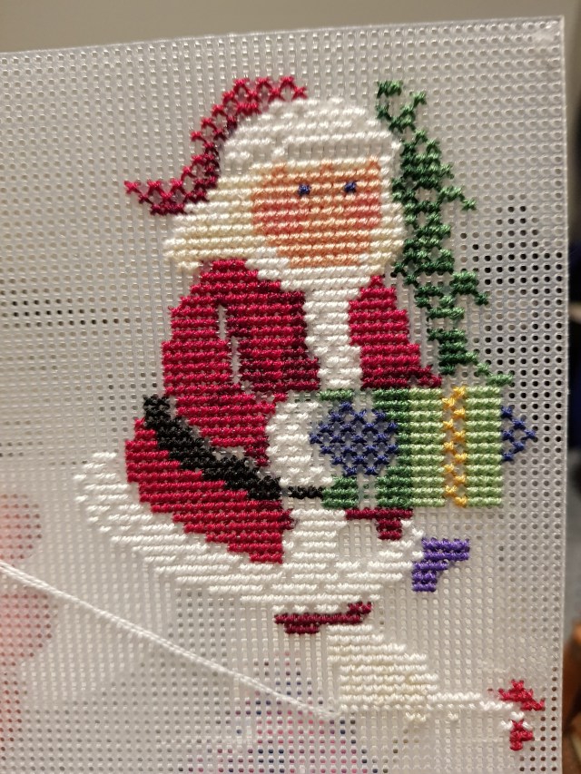 Not a lot of progress on Celebration Santa; most of this was done last week. I’m changing out some gift boxes for hens as the recipient has chooks galore.