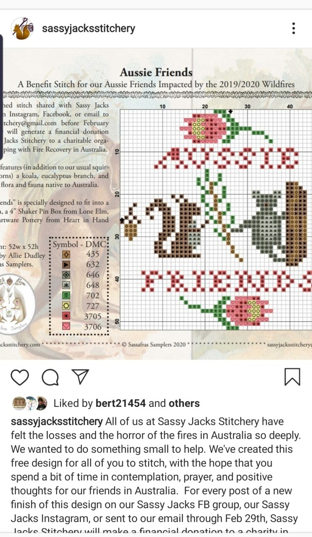 Leone let me know about this one – Sassy Jack’s are making a donation for every finish shared to their site, IG etc. Details are on their site & the download is free: https://www.sassyjacksstitchery.com/