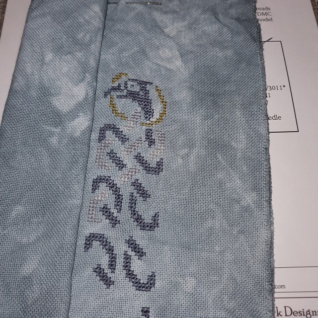 I want to save the two finishes for WIPocalypse, so here’s my WIP. Elizabeth Foster designed Antique Celtic Sampler, which I’m stitching with the recommended Weeks Dye Works threads, but on my own Mottled Frost lugana (Mum chose this). Despite stitching each cross as I go, it’s still quick.