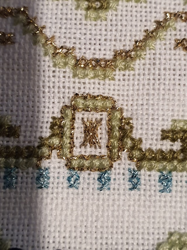 I’ve even learnt a new to me stitch, Sheaf. That’s only my first go, and it’s with Kreinik too, so I’m pretty happy with that.