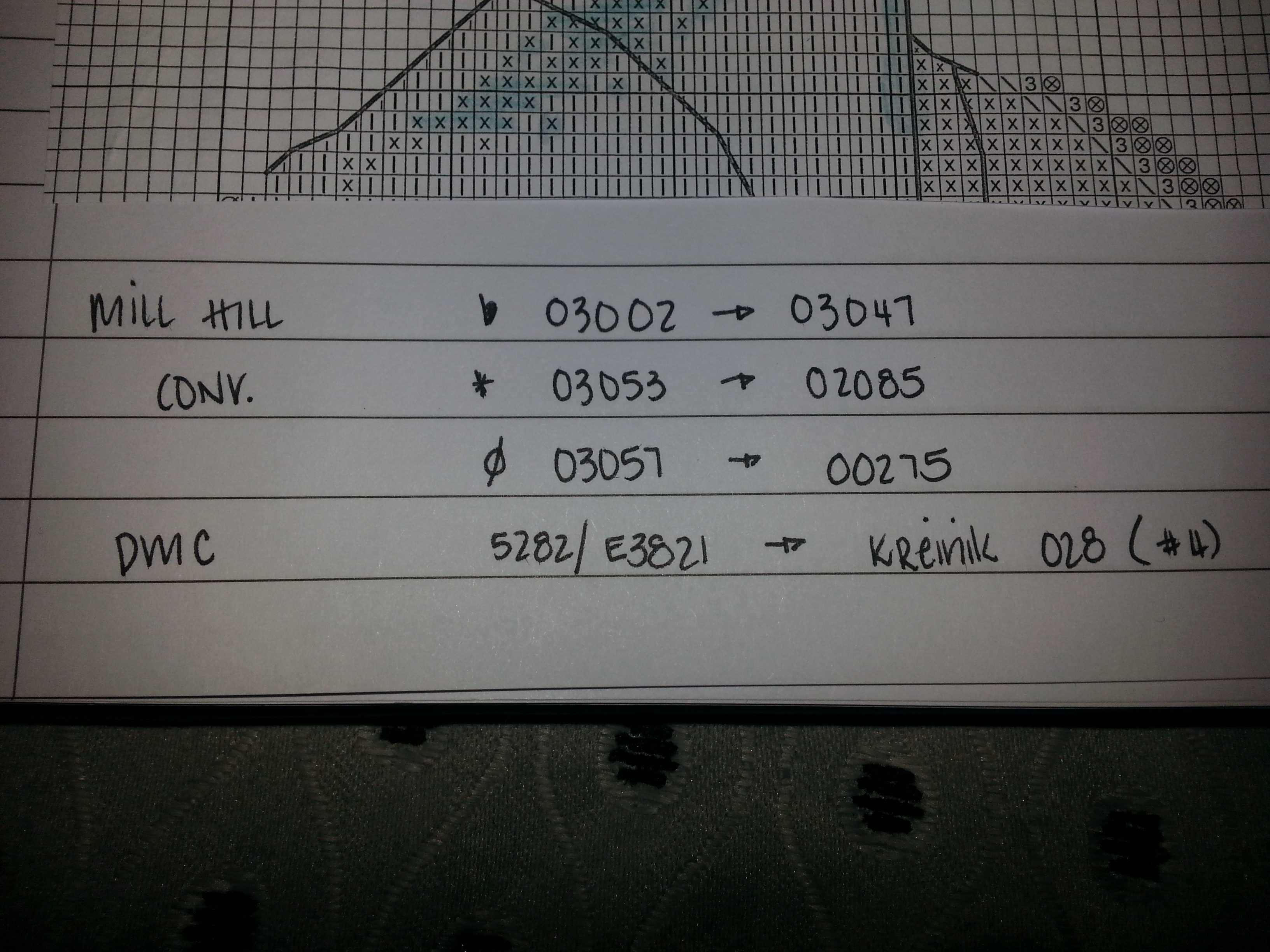 Beads: N in the border 02026 to 03050; O in the border/hair + collar went from 02010 to 00161; tree is all 03050 except the star is 03016; O in the dress is all 02026.