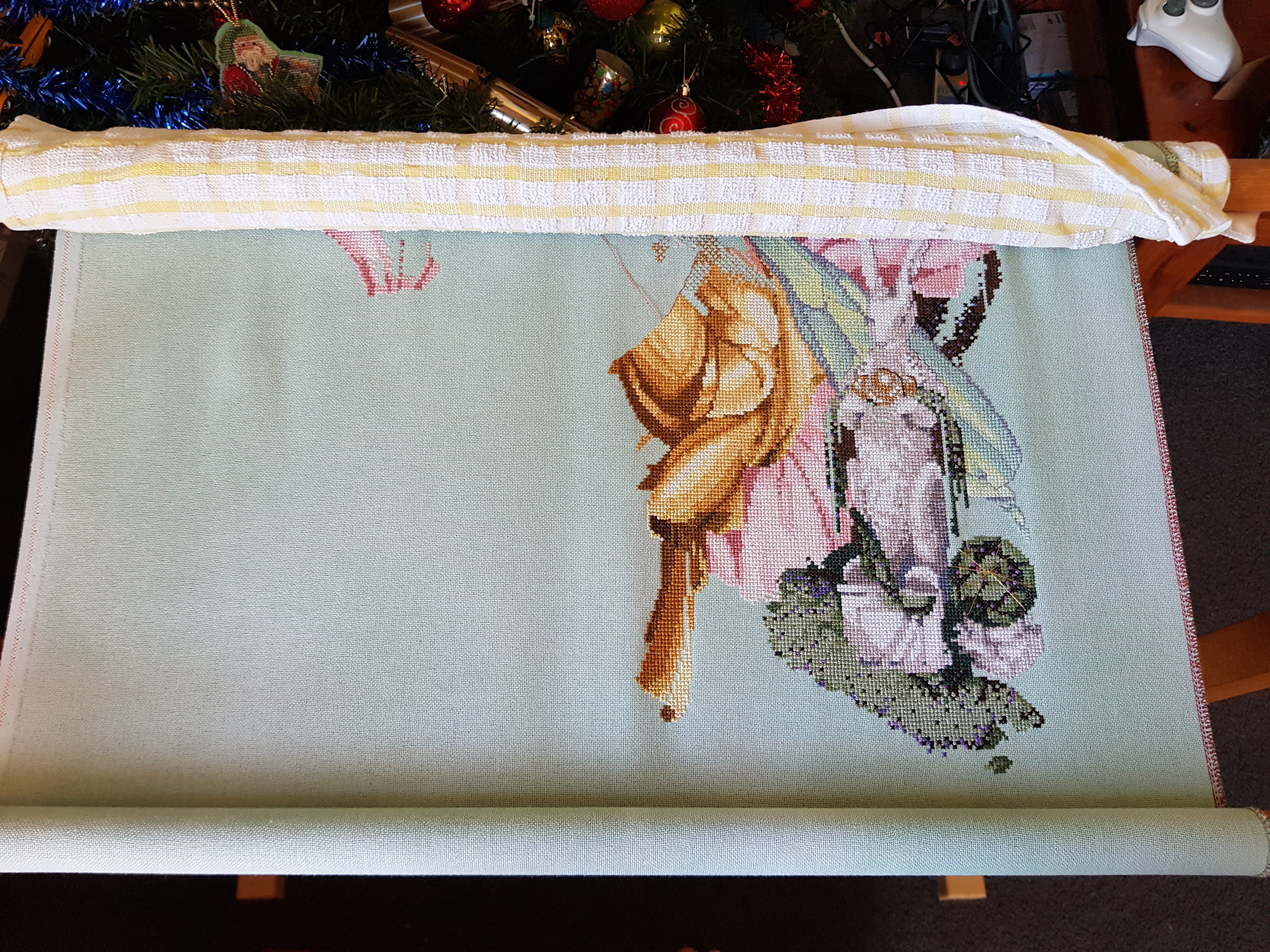 Additionally, I’ve got over a thousand other stitches in SF and at work, I’ve stitched two Genoa Santa’s (one for me, one for Lou), and started two of the Wales version. I’ve also touched one of my yearly goals and stitched on Fairy Idyll – one of the monthly HPSAL goals was 500 stitches in gold, so I’m used her dress. So far, there’s only 3 days this month I haven’t stitched, & I’m happy with that.