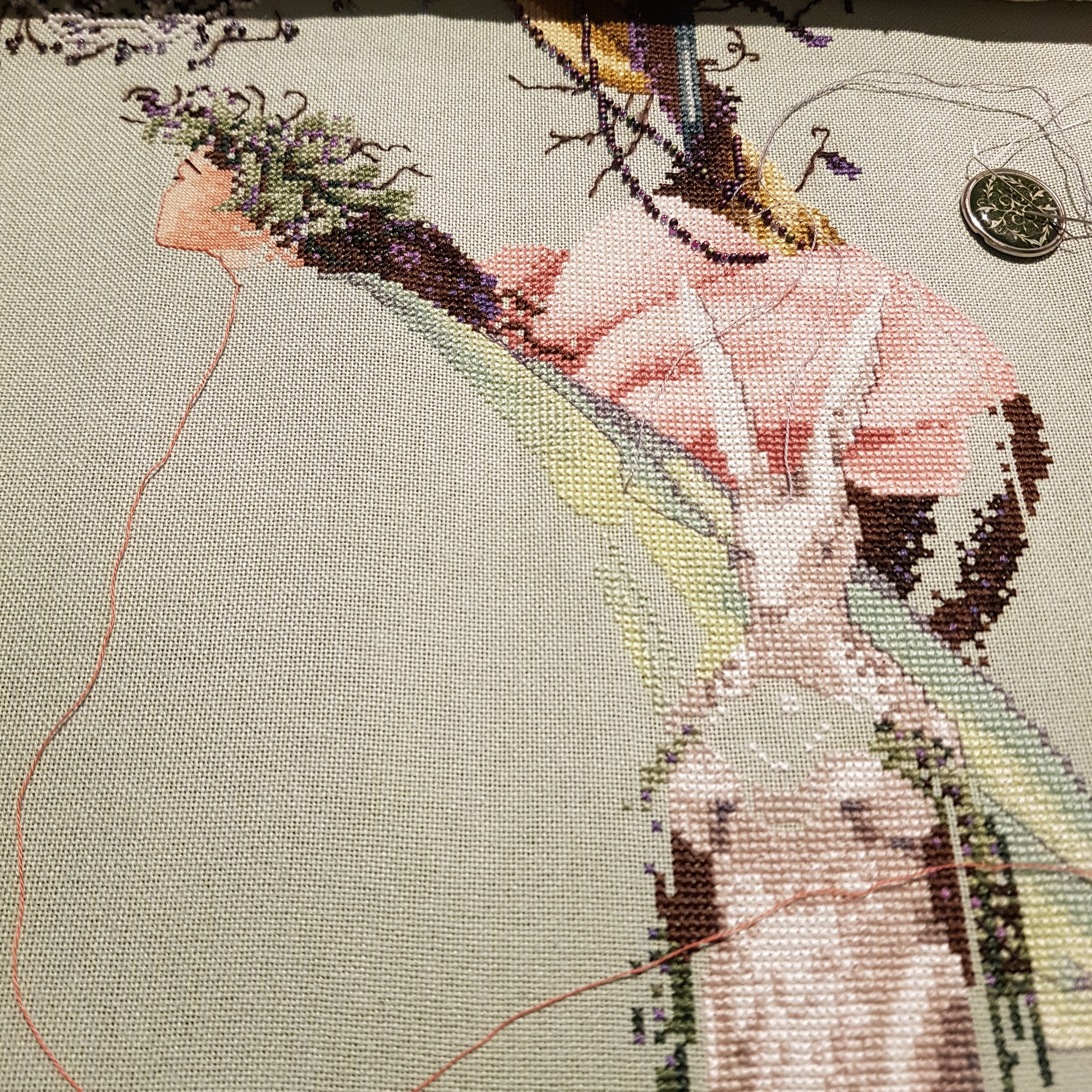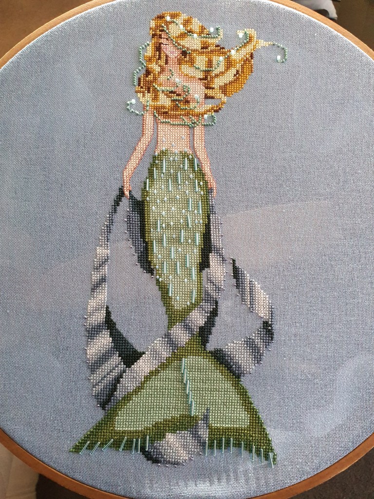Since my last WIP Wednesday post, which would have been my last stitching update, I have finished Luce Mia, however she is quite converted from the original. Not so much that it’s glaringly obvious, but more so that she fitted in with the mermaid wall and our overall household aesthetic.