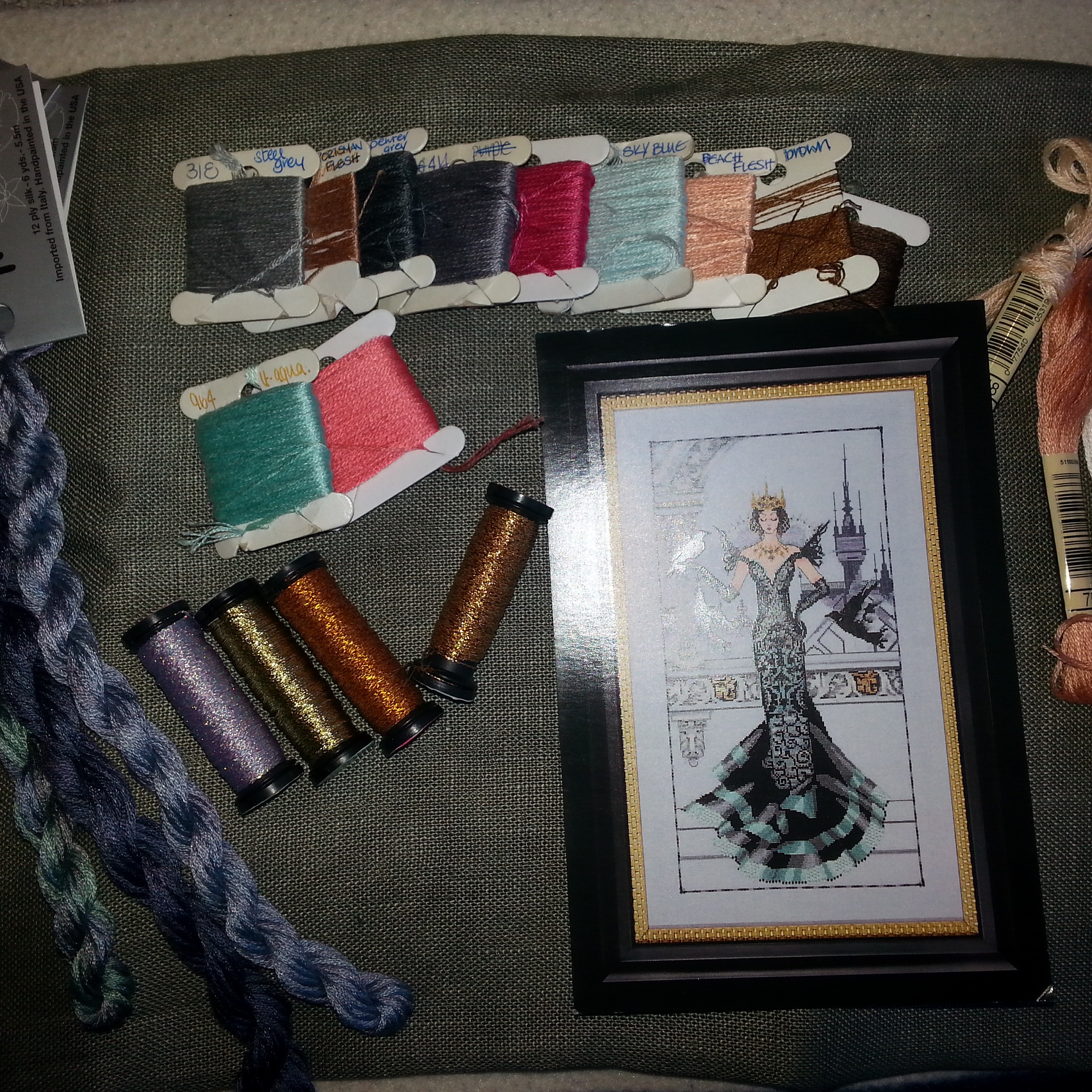 After 10 days or so not stitching, I am back working on Nantucket Rose, altho only 2-3 thread lengths per session. Anything more still hurts! I am about a quarter towards my goal of completing the top canopy. I don’t know if I will continue on her past the end of August or swap to my planned Mira month or Return to Hogwarts which are the Stitch Maynia SALs. If I have the fabric I might just start the Clouds Factory Hogwarts House banner pattern.