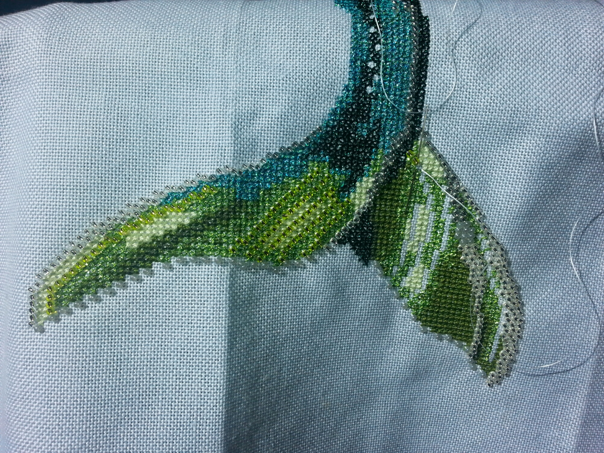 I did change out some beads, more because I had them to hand but they fit so well on this fabric. Everything is still Mill Hill.