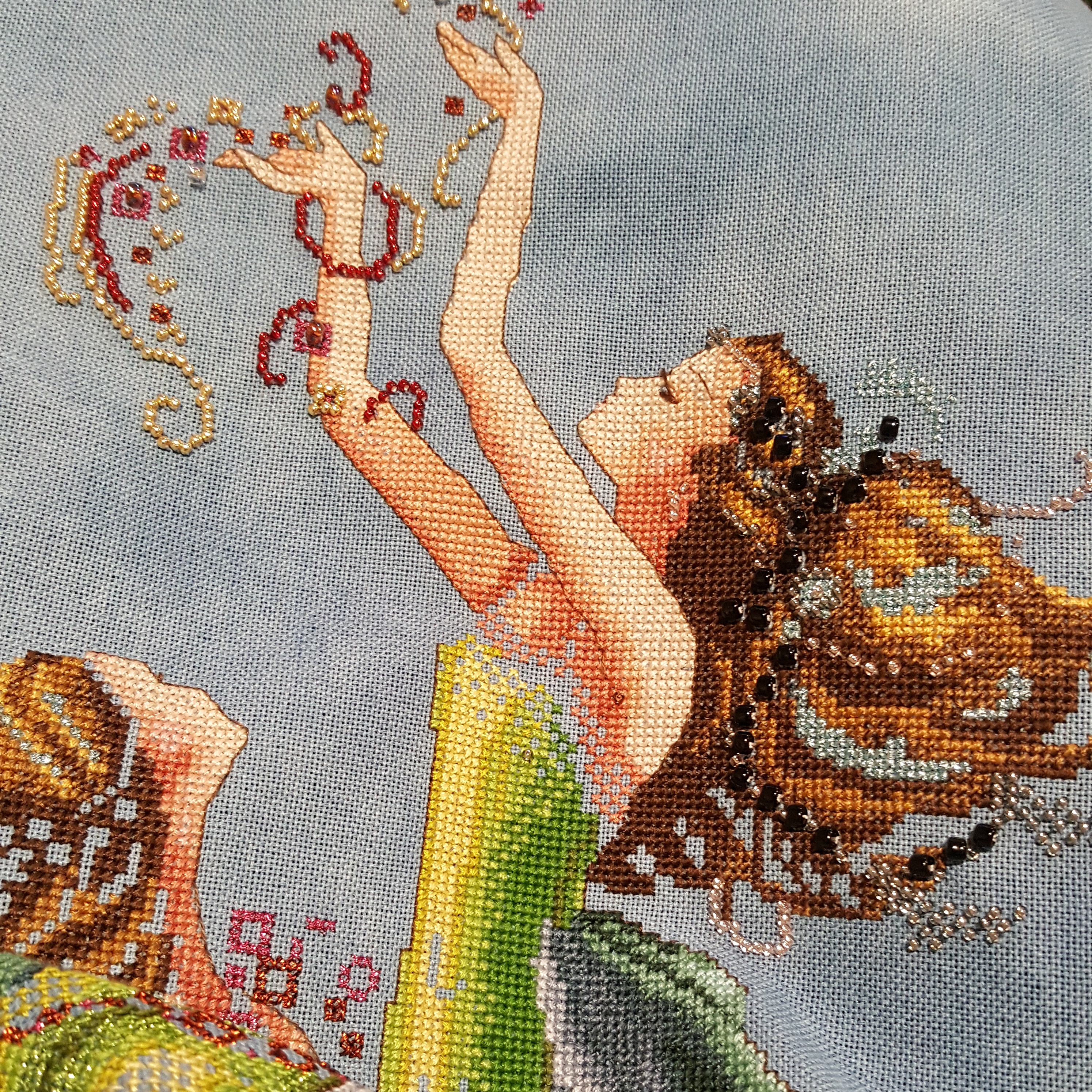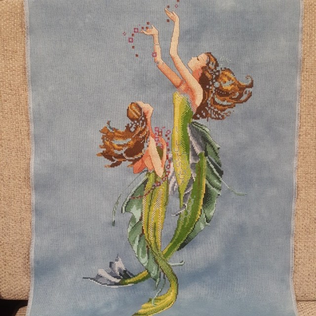 And another month draws to a close and I got some stitching in! Mind you, it was a bit of a race for the last portions of beading on Mermaids but – I got a finish!!! My goal for the month was to finish all the stitching, but I could see the finish line and off I went.