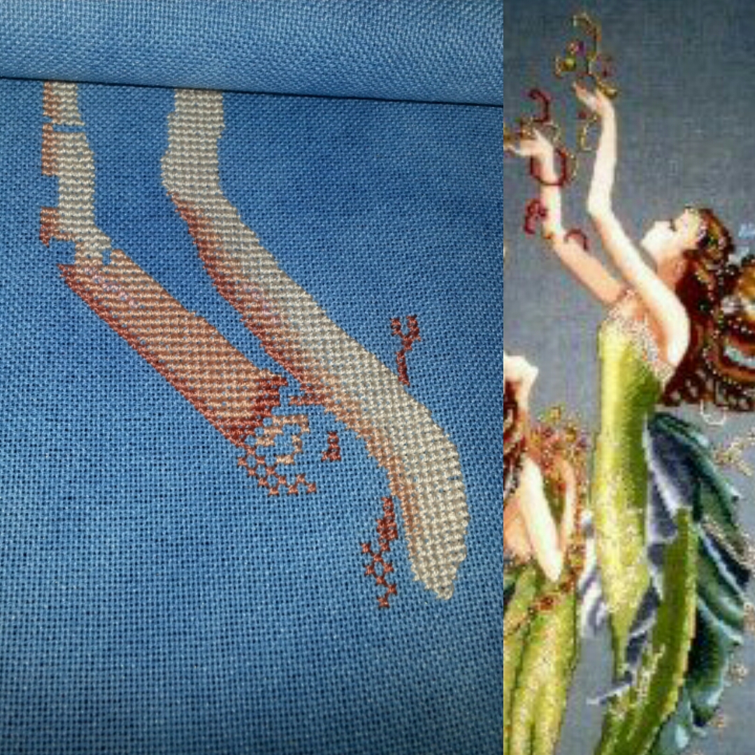 I’m feeling more than a little off today. It’s the first Monday of the new fiscal month here at work, so it’s busy-busy-busy yet I want to play (as I write this I’m heading into the last couple of hours and I’ve cleared today’s reporting requirements and am up to the 23 store emails from Friday, so at least that’s something). As a family we have a new routine this week with Si away (we’ll see him briefly on Thursday but that’s it until Sunday). I am absolutely stoked to have finished Cloudsfactory A-Team (only 6 stitching nights!), a huge chunk of Persephone’s skirt for Stitch Maynia’s colour challenge (over 2K stitches or nearly half a skein!) and a new start on Emma Congdon’s Wise Words trilogy (altho for now I only want to do the Tolkien). Both my Secret Santas this year are really hard!!!