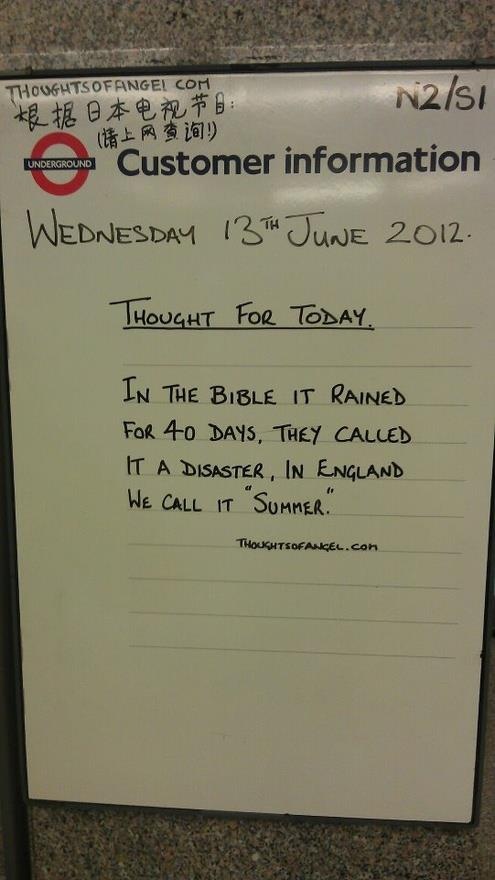 I caught the train again today (it’s around fifteen minutes walk there, and ten on the other end) as I couldn’t be bothered to drive. Well & truly at work before I realised that I’d left my brolly behind, and then a couple of minutes later the tweets start.